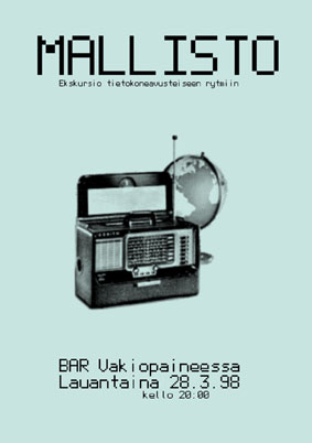 Malliston seuraava esiintyminen Turussa sijoittui Brinkkalan ullakkogalleriaan, jossa avattiin vappuaattona 1998 Turun taiteen ja viestinnän oppilaitoksen valokuvausosaston kakkosvuosikurssin näyttely. Malliston koko esiintymisarsenaalin, ml. Casio CZ-5000:n ja bändin PA:na toimineen Peaveyn kiipparivahvistimen roudaaminen junassa ilman kantolaukkuja oli oma operaationsa. Tiiviin tunnelman takasi ihmispaljoudesta ja lamppujen hohkasta lähes nelikymmenasteiseksi lämmennyt näyttelytila.
